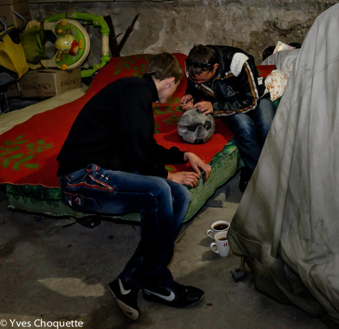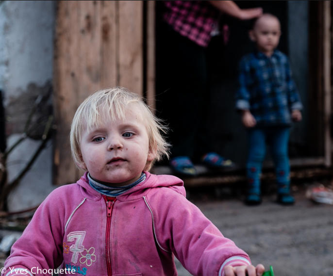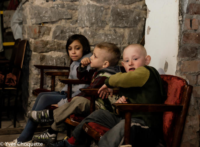 One of the severals kids, living in the bunker, intrigued by my presence.