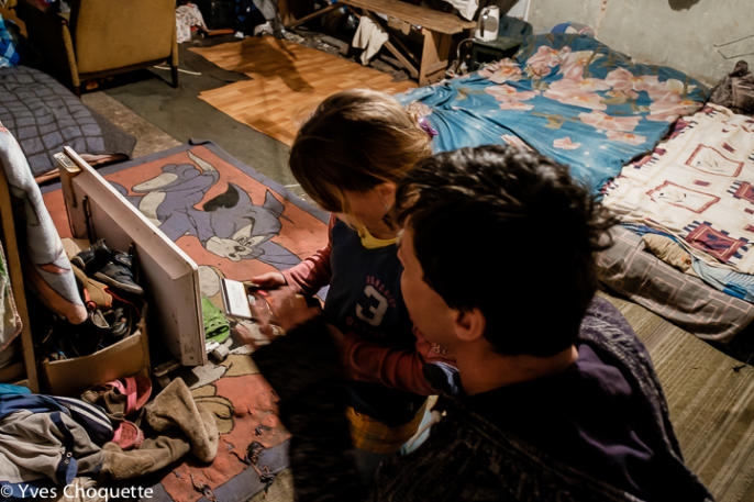 Marina preparing the dinner, pasta for her four kids, in a small room reserved for cooking. Like for most of the families