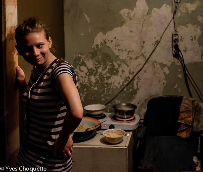 Natasha, 11 years old, is severely traumatized by the conflict. She screams every time she hears an unfamiliar noise.
