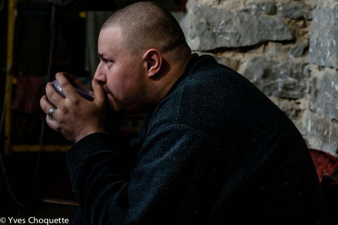 Anton, 30 years old. He has no work and can't join the separatist army because his legs were injured in a car crash a