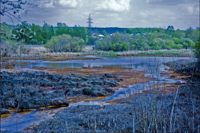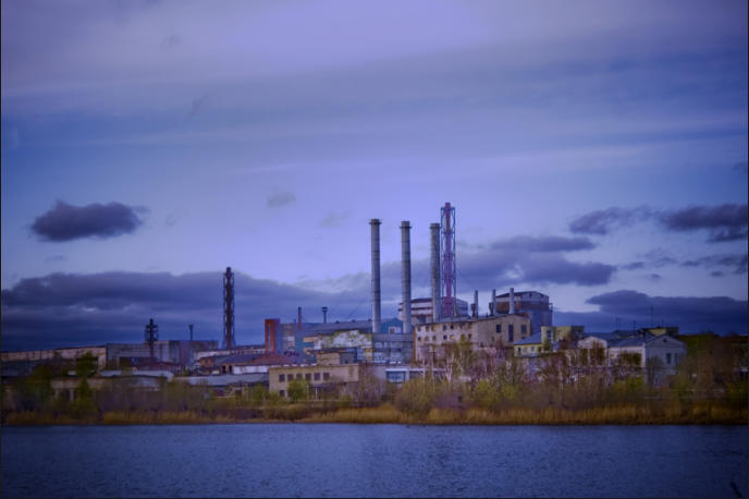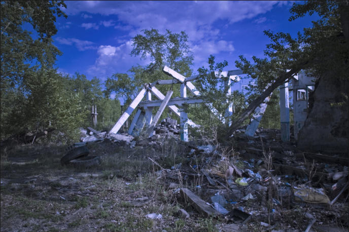 Ruined buildings around an old, flooded, copper mine which was fully working during the time of the old USSR.