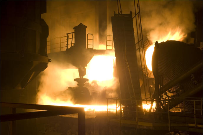 Melting of steel at the metal-plant in the city of Polevskoy.