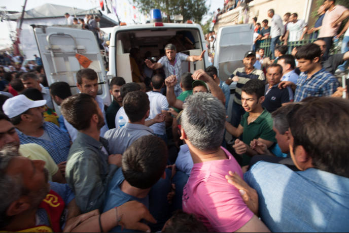 Outside the hospitals in Diyarbakir there were scenes of anguish as people waited for news of relatives and friends.