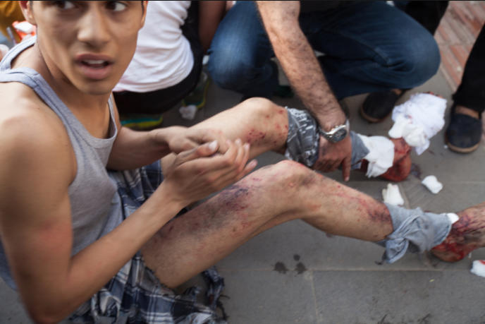 Injured were given first aid in the streets as they waited to get taken to hospitals.