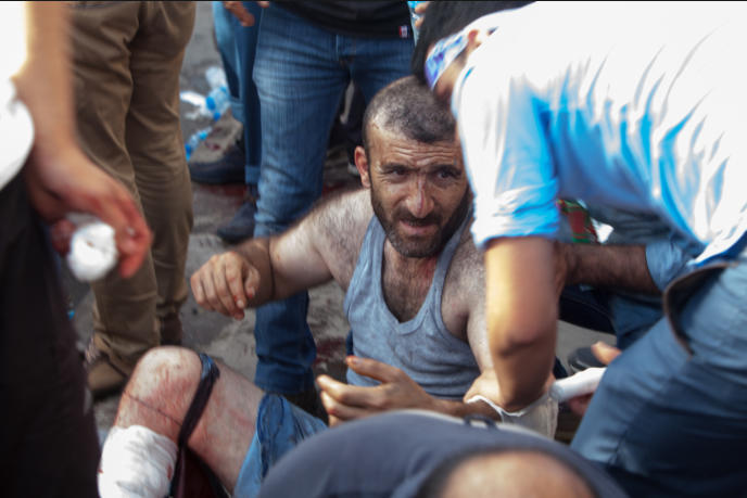 People were given makeshift bandages and torniquets to stop bleeding. The popular suspicion in the crowd was that