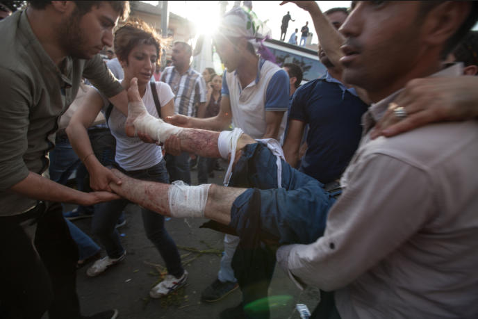 control that the ruling AKP had on the country. The images show a bombing of an HDP rally in Diyarbakir where