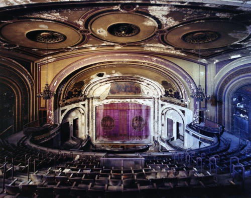 They are in every American city and town - grandiose movie palaces, constructed during the heyday of the entertainment industry, that now stand abandoned, empty, decaying, or repurposed. Since 2005, the acclaimed photographic duo Marchand/Meffre have been traveling across the US to visit these early 20th-century relics. In hundreds of lushly coloured images, they have captured the rich architectural diversity of the theaters’ exteriors, from neo renaissance to neo-Gothic, art nouveau to Bauhaus, and neo- Byzantine to Jugendstill. They have also stepped inside to capture the commonalities of a dying culture: crumbling plaster, rows of broken crushed-velvet seats, peeling paint,