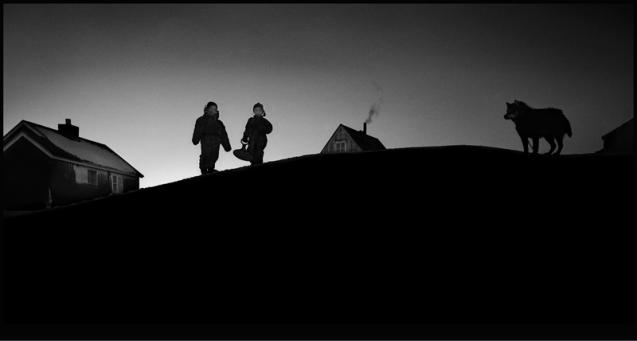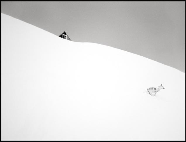 After a blizzard in the village of Sermiliqaq the landscape changes rapidly when the snow blows everywhere.