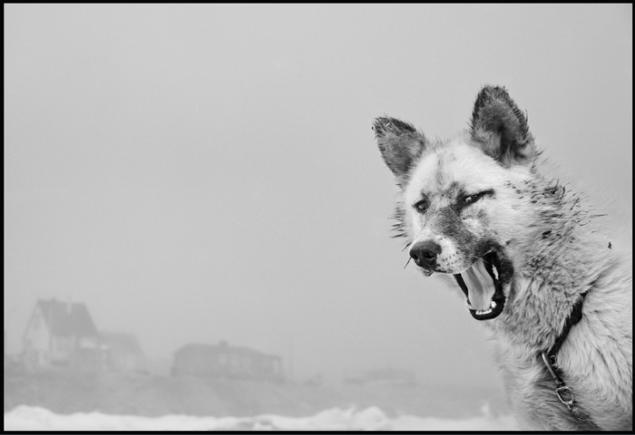 A howling dog in the village of Qaanaaq in Thule.