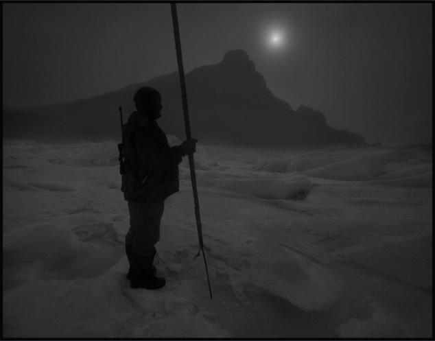 Greenlandic hunter waiting for his pray; a seal coming up through a hole in the ice. He waited for hours