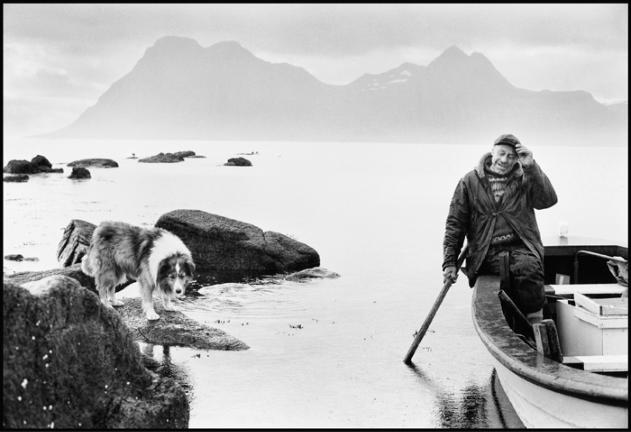 Old Axel at Gjögur was waiting for his flask of coffee. His dog Týri was afraid of the water and waited on the