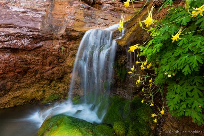 Columbine and Waterfall, Elves Chasm, Middle Granite Gorge, Grand Canyon National Park, Arizona.