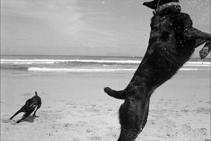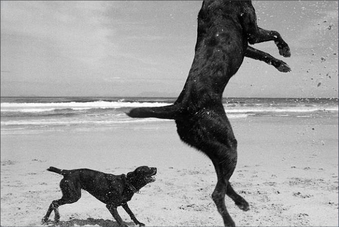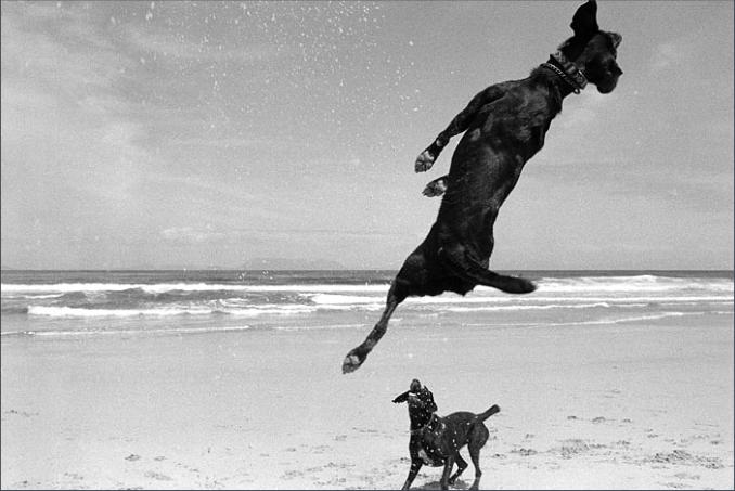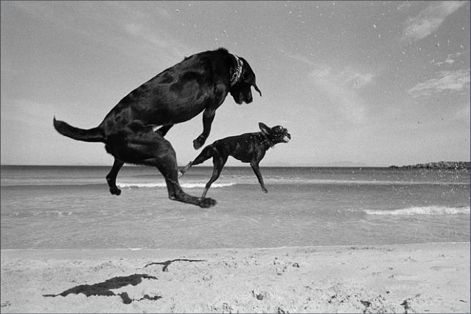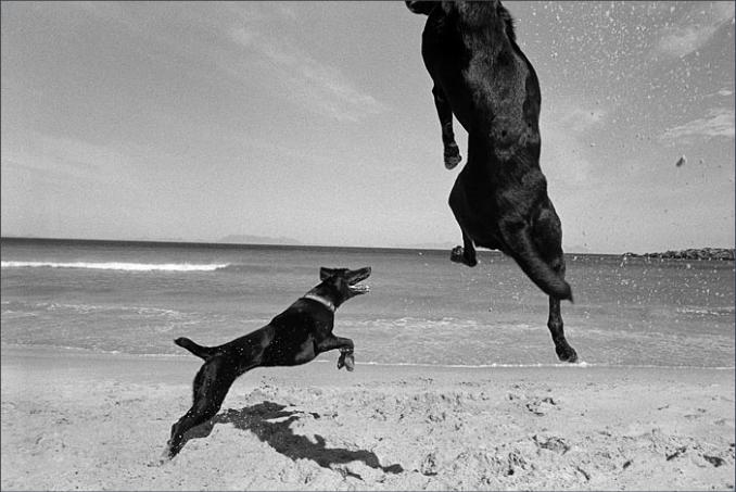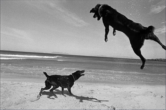 their attention by flicking sand up into the air with my toes while photographing their gymnastic leaps and joie de