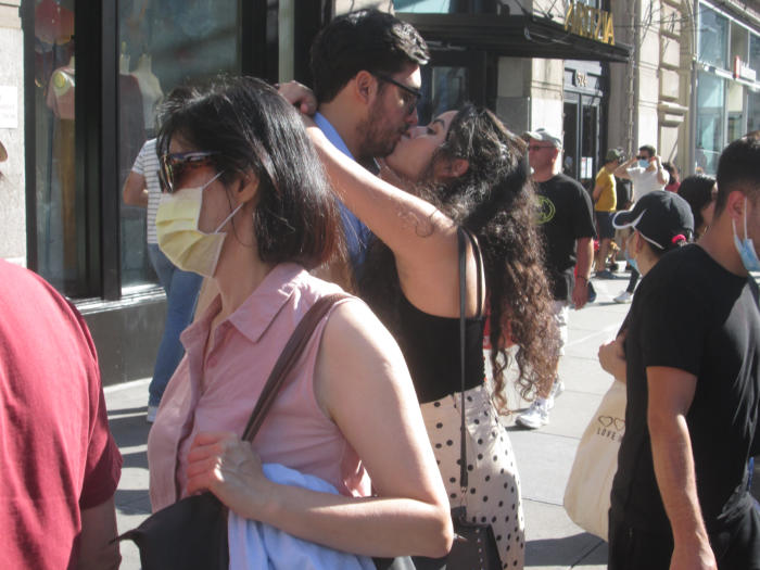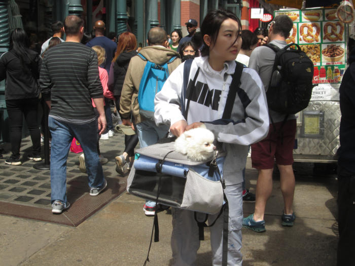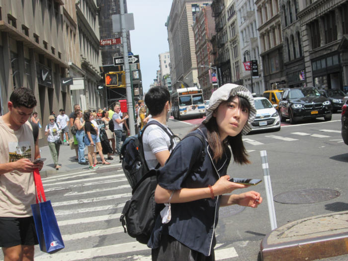 I've been chronicling NYC's streets for many decades. Over the past few years one of my favorite spots for people photography are the intersections of Broadway and Spring / Prince Streets in Soho on weekend afternoons. You'll find shoppers, flaneurs, locals, European tourists and fashionistas. I took a break during the worst Covid times in 2020 but the following year I came back in earnest. The pandemic really affected many Soho businesses as tourism ground to a halt. Since this past spring, though, on nice weekend afternoons, this stretch of Broadway between Spring and Prince Streets is again abuzz with people.