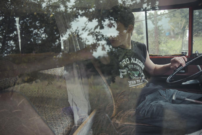 often on farms to get away from former peers and from a hostile urban landscape. Felix, 15, in his new campervan in