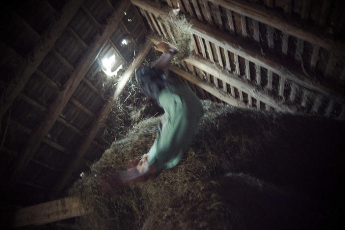 Niko, 13, in the barn at his foster family home in Tröbsdorf. but then agreed.