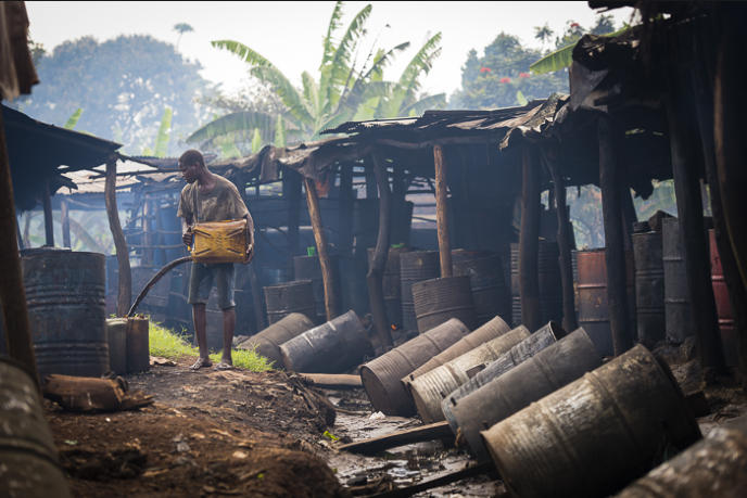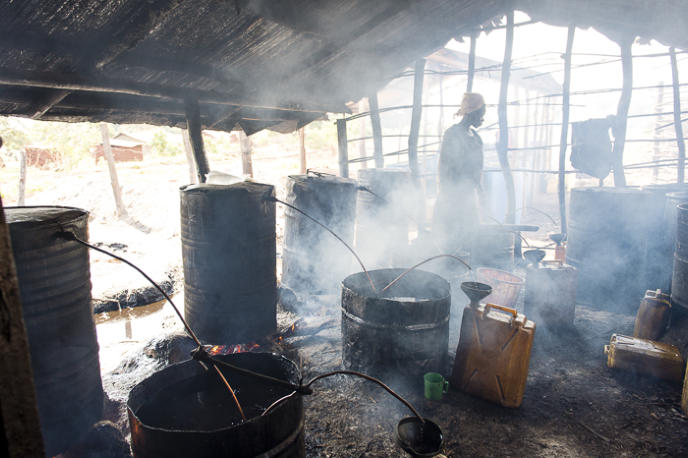 The black sticky residue from the illegal distilling process saturates the ground around Kimasa.