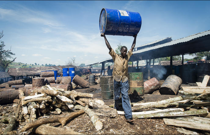 A delivery of new distilling drums are distributed among Kimasa's illegal distilleries.