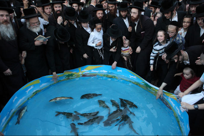 Orthodox Jews have a service called Ditch where they pray and throw bread to fish to cast off their sins.