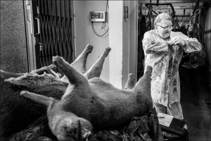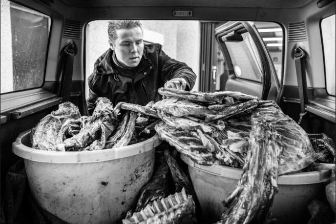 Thomas Chipperfeild collecting meat for his dogs and the big cats. As they are now in Scotland the meat is venison.