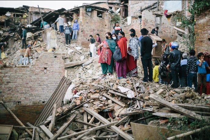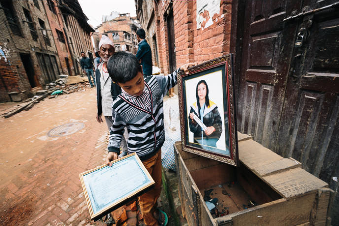 around the Kathmandu Valley, meeting survivors who were desperately searching through the rubble, hoping to salvage