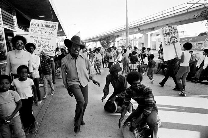 1971 - Oakland, California, USA: The Lumpen, the Panthers’ singing group, performs at the boycott of Bill’s Liquors.