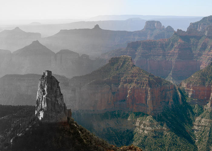 the Canyon’s horizontal sweep? Or the black-and-white photographs Ansel