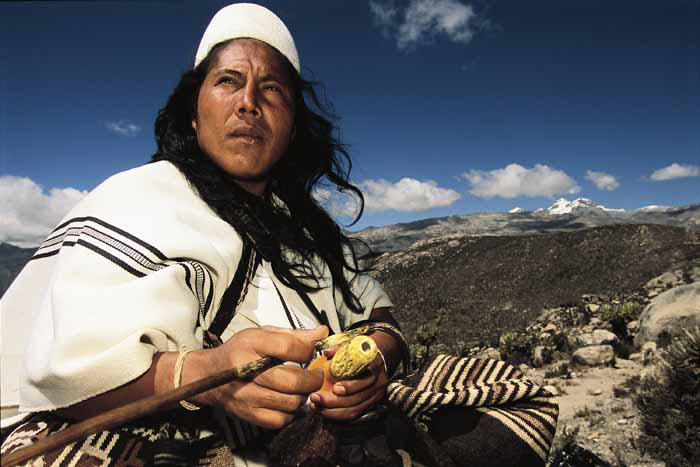 potentiate hayu, or coca, their most sacred plant. The conical hats worn by Arhuaco men represent the snowfields of the