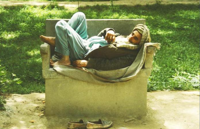 Kabul. When really tired, even a small stone bench can provide a sleeping place.