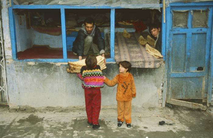 Subsistence bread sales on the streets of Kandahar. Afghan bread is the most delicious I have ever tasted in my life.