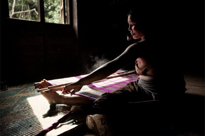 A woman weaving in the Boloven Plateau, near Pakse, Laos.
