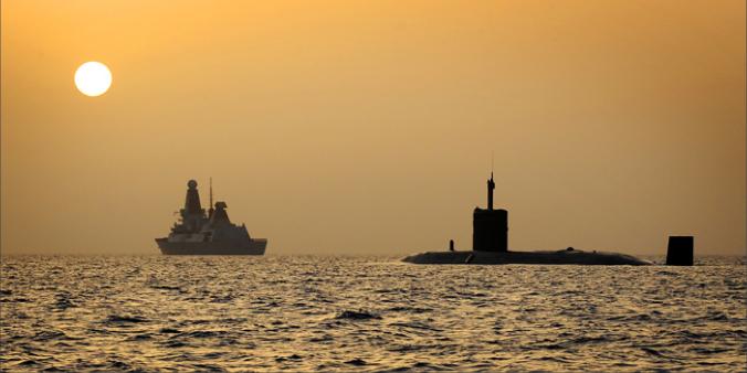 The image might look threatening – a submarine’s dark form trailing a British warship at sunset. But for a sailor and