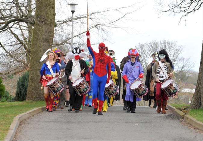 within the Commando Training Centre with collection buckets to raise money for Comic Relief. The Band march