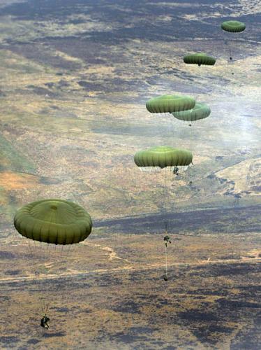 Reconnaissance Squadron (SRS) conducting a low level parachute jump from a RAF Hercules aircraft. The