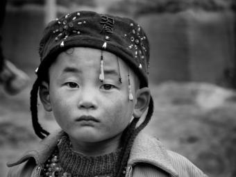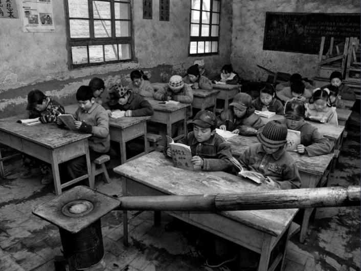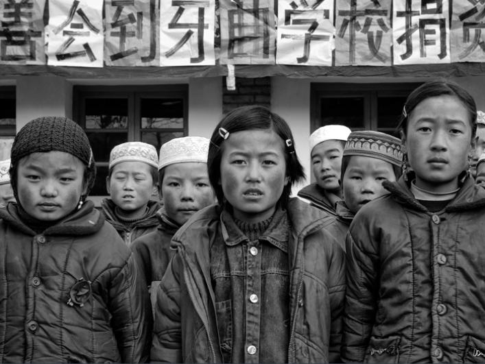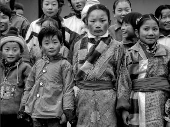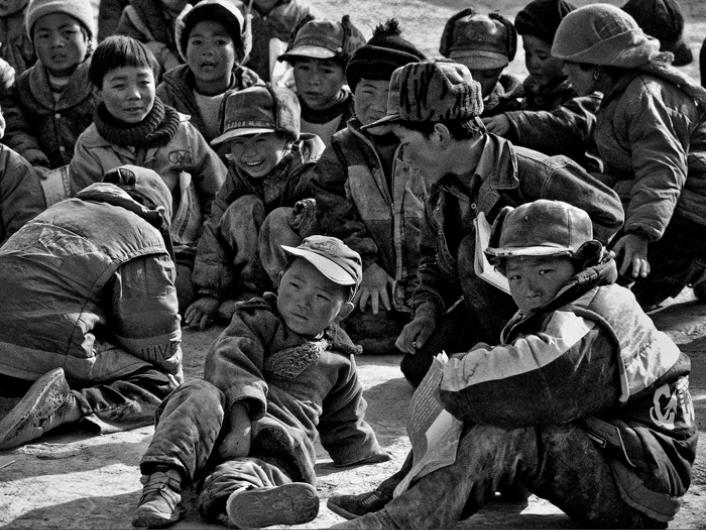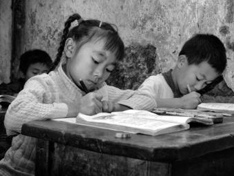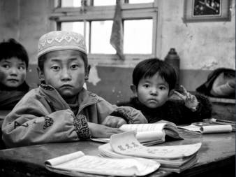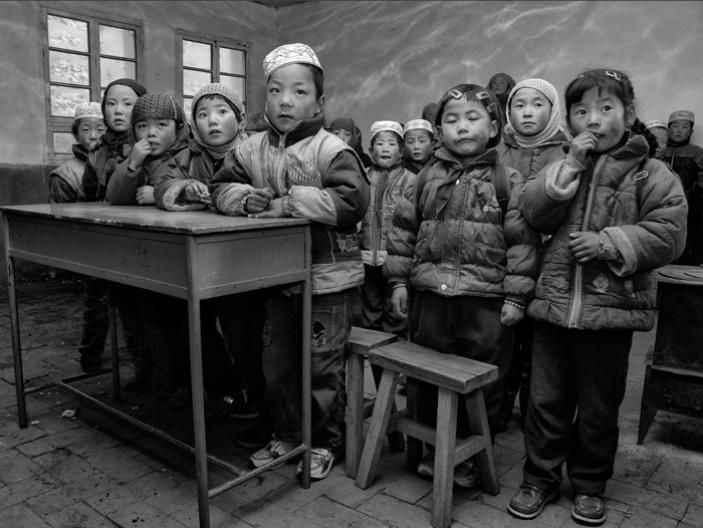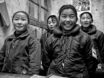 Chinese class in Damu. The children study Chinese, Tibetan and English. In order to learn Chinese and Tibetan