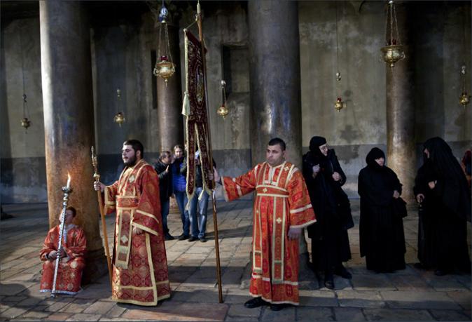 Orthodox Christmas eve, January 6, 2013, inside the Church of the Nativity.
