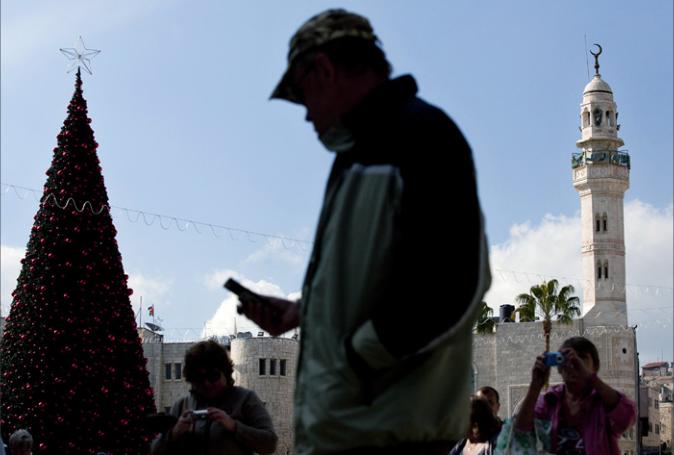 A Christian visitor walking through Manger Square in the West Bank town of Bethlehem, 17 December 2012,