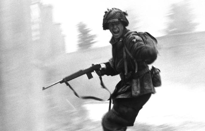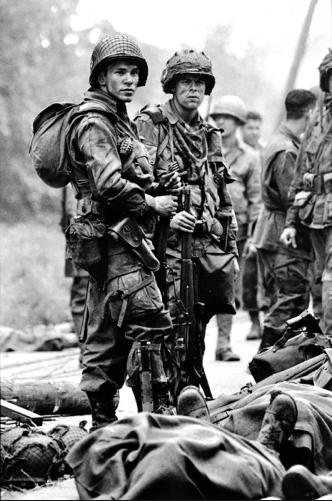 Band of Brothers was a television mini series produced by Tom Hanks and Stephen Spielberg and first aired in2001.The series followed Easy Company (part of the US 506th Parachute Infantry Regiment, 101st Airborne Division) from training to action during World War II. The real-life events depicted were taken from interviews given by Easy Company veterans.Stills for the film were shot by Stephen Spielberg’s preferred film-stills photographer, David James. Here, David describes his time on the set of Band of Brothers and choses some of his personal favourites from the film.“Every time I drive to my home I am reminded of my time on Band of Brothers. My route takes me on CA101; highway 101 is named the 'Screaming Eagles Highway', dedicated to the 101st Airborne. The series followed soon after I had shot the stills on Saving Private Ryan, it was exciting to get back to the Second World War. I often refer to myself as Dr Who with a camera.“One of the special memories of the 10 month shoot was a visit from a bunch of the real guys (the veterans), their camaraderie was a wonderful thing to witness, the Band of Brothers were as close as they had been since fighting side by side in the war. “Our actors on the series became their own BOB and to this day they have a yearly re-union.”David James