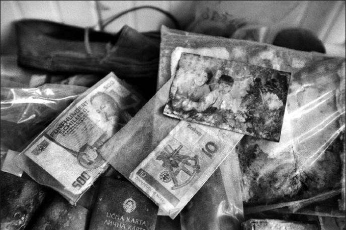 Tuzla, Bosnia and Herzegovina, 2010. Identity card, money and photos found in a mass grave.