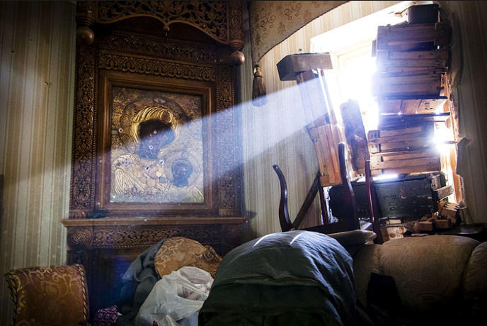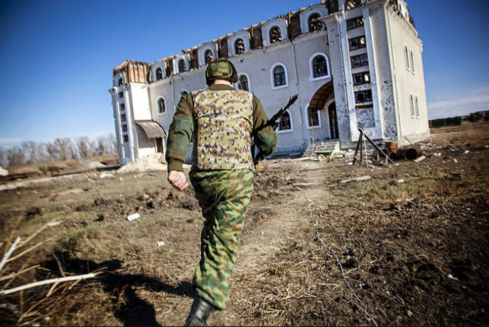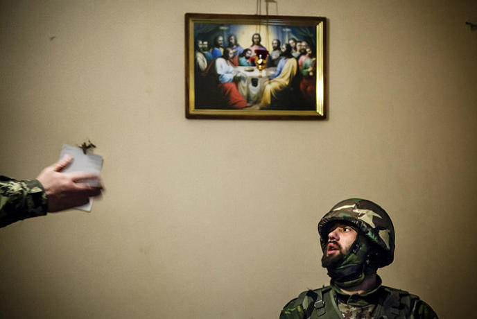 Inside the church, the Donetsk troops have a checkpoint.