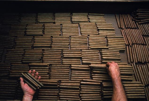 Cuba 1991 - For uniformity and presentation, a cigar worker sorts cigars by colour at the Cohiba Cigar