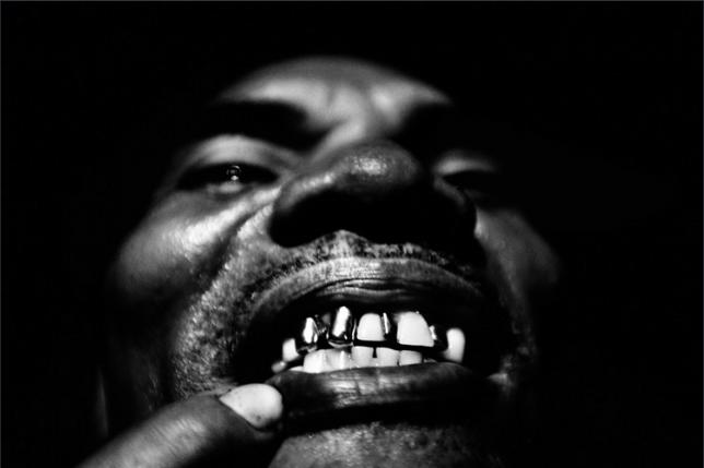 Alves Do Silva is showing his gold teeth. Gold he found himself. He's been working as a garimpeiro for about