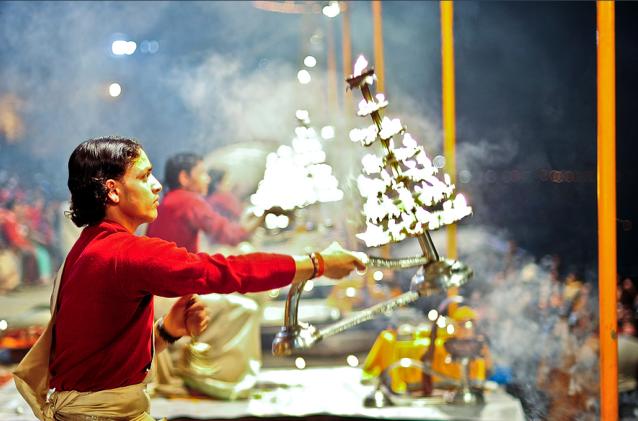 Sondha Aroti (evening Puja). A Hindu religious ritual.