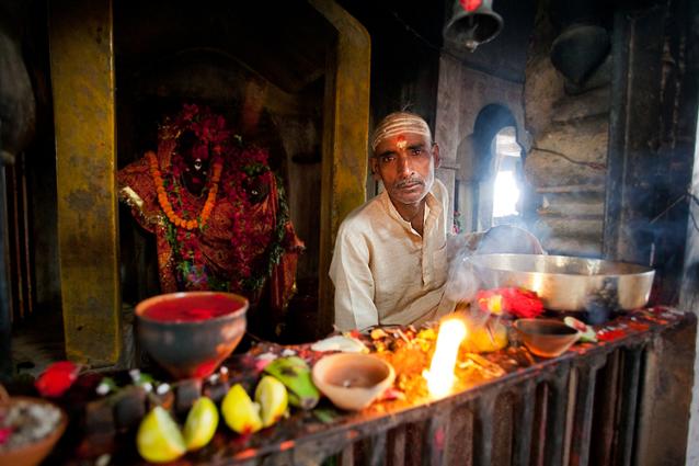 Pradeep Kumar Dwivedi, the priest of the Shitala Mandir at Dasaswamedh Ghat, Varanasi is one of the few