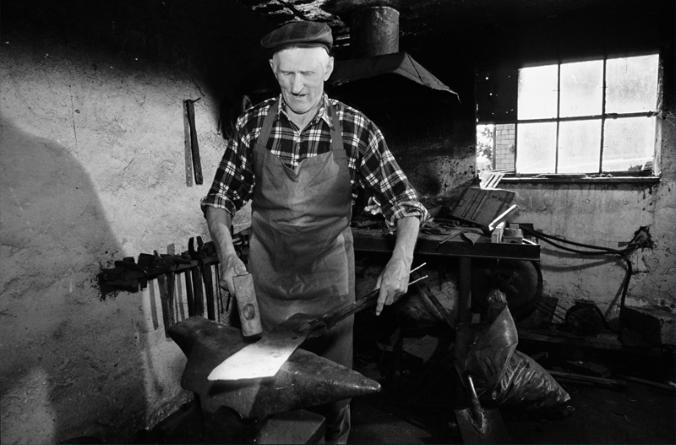 The blacksmith from the Falcon Field village hammers a plough into shape.