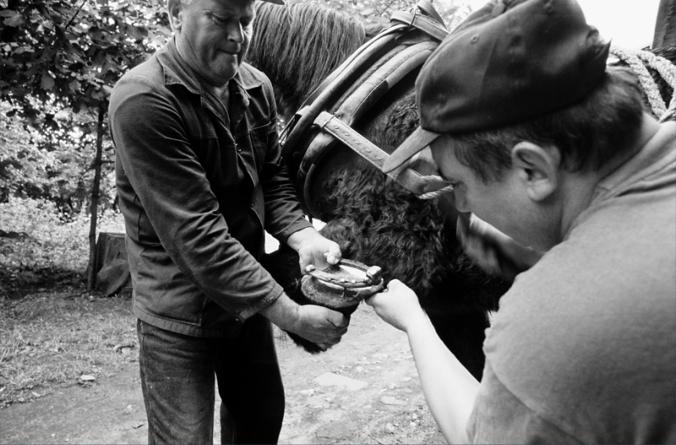 Farmer from Niegowa village brings his horse to the blacksmith.
