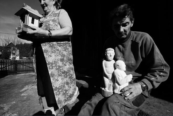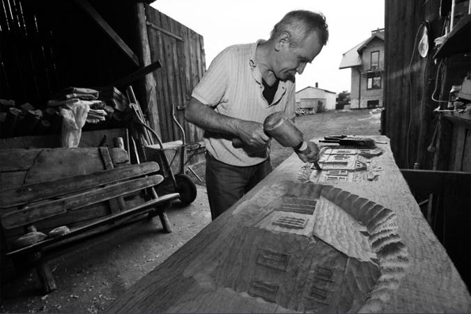 The sculptor, an artist from Przyrow commune, illustrates his village story in bas-reliefs in wood. When completed,