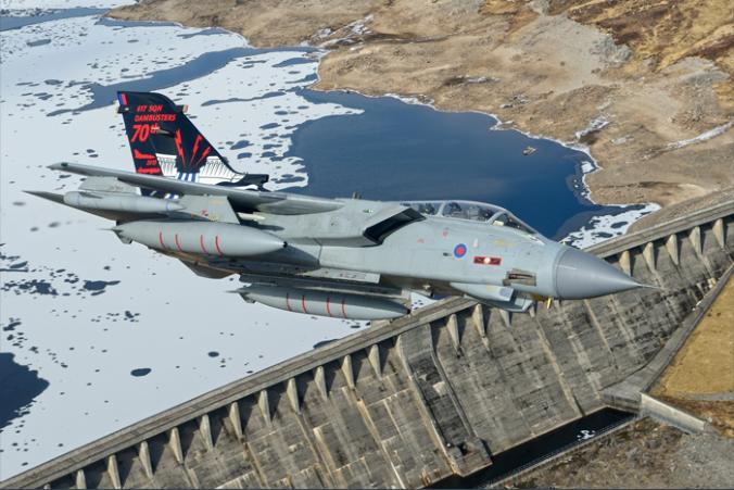 mission by flying one of the squadron's current Tornado GR4s over a dam to capture a moment in time - 70 years on.
