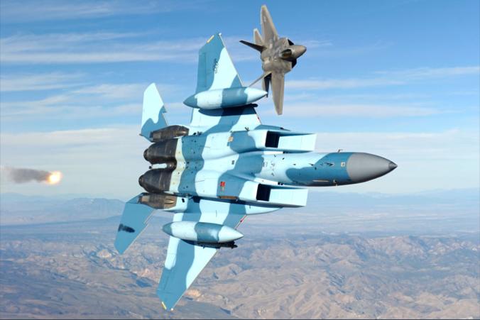 For this shot I wanted to show the US Air Force's super fighter the F-22 Raptor chasing after another fighter. The