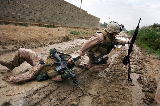 Karmah (Garma) October 31, 2006 Sgt. Jesse E. Leach drags Lance Cpl. Juan Valdex of Weapons Company, 2nd